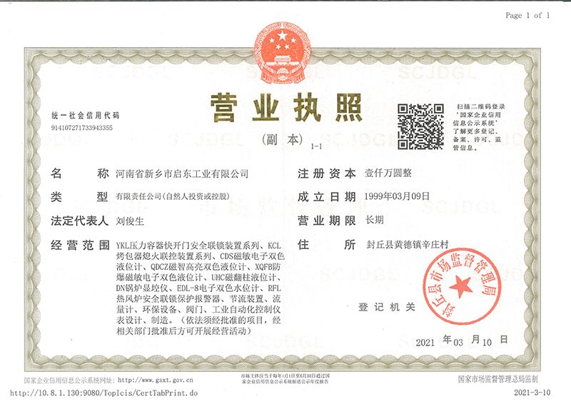 河南省新鄉(xiāng)市啟東工業(yè)有限公司始建于1987年,是專注研發(fā)、生產(chǎn)自動化儀器儀表(主要與壓力容器、鍋爐等容器配套使用)的廠家。主要產(chǎn)品有液位計(磁敏雙色型、磁翻柱型等)系列、烤包器熄火聯(lián)控裝置系列、壓力容器快開門安全聯(lián)鎖保護裝置系列、鍋爐報警器系列。二十多年來,公司產(chǎn)品暢銷國內(nèi)并遠銷俄羅斯、蒙古與東南亞,深得廣大用戶的信賴和好評。我們多年來致力于自動化儀器儀表的研制生產(chǎn),公司現(xiàn)具有完善的生產(chǎn)、試驗、檢測手段和設(shè)備。科技創(chuàng)新、誠信服務(wù),是我們不變的經(jīng)營理念,我們將以強有力的技術(shù)支持及售后竭誠為客戶提供良好的服務(wù)。  2012年我公司成功研發(fā)了KCL系列烤包器熄火聯(lián)控裝置,并于2013年2月2日榮獲中華人民共和國國家知識產(chǎn)權(quán)局辦法的《實用新型**證書》<**號:2021202257735>該產(chǎn)品廣泛應(yīng)用于唐鋼等大型鋼鐵企業(yè),為烤包器安全作業(yè)提供了有力的保障。  2002年我公司成功研發(fā)磁敏電子雙色液位計獨特的高亮度LED紅綠雙色顯示,獲得了專家的首肯和用戶的一致好評。在此基礎(chǔ)上我公司研發(fā)人員十年磨一劍,致力于XQFB-1防爆型磁敏雙色液位計的研發(fā),于2013年12月27日由國家防爆電器產(chǎn)品質(zhì)量監(jiān)督檢驗中心檢驗合格并頒發(fā)防爆合格證書<編號:cnex19.0883>。該產(chǎn)品性能得到了充分的發(fā)揮,廣泛應(yīng)用于含有Ⅱ類A·B級T1-T4組可燃氣體或蒸汽與空氣混合形成的爆炸性混合物的0區(qū)、1區(qū)危險場所。連接用戶DCS或PLC系統(tǒng)實現(xiàn)遠距離集中顯示和控制,從而實現(xiàn)節(jié)能、數(shù)字化管理。為用戶增加了一定的經(jīng)濟效益和社會效益,。2014年公司成功申請了夢潤儀表的logo,新的品牌新的形象,夢潤儀表是啟東的LOGO, 歡迎新老用戶前來洽談合作。  我們一如既往地注重科研的投入,憑借產(chǎn)品的不斷更新、加大科技含量,進一步拓展市場。我們相信品質(zhì)成就未來,以過硬質(zhì)量、優(yōu)惠價格、完善的售后服務(wù)熱忱歡迎廣大客戶來我司視察指導、洽談業(yè)務(wù);精誠合作,共創(chuàng)輝煌!